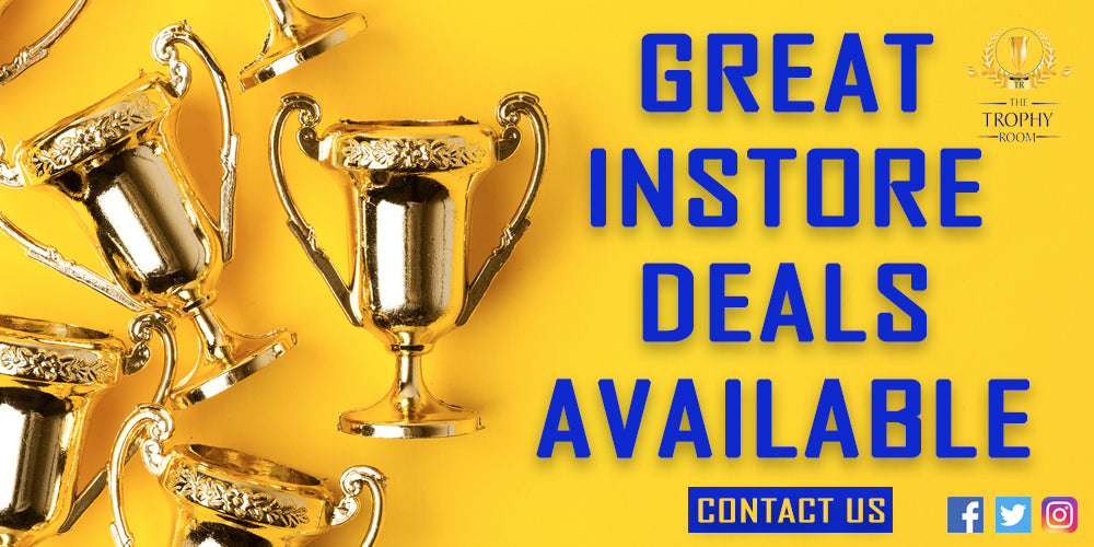 In our showroom we always have a large array of trophies that we class as "SPECIAL OFFERS". These can be one-offs or bought in larger quantities depending on availability. Along with these offers we also look to offer the best possible price on all the current year ranges, we really do help all customers find the best possible solution within their specific budget. In 2020 we launched our first e-commerce website which provides both our local customers and customers from all over the country an even more easier option to purchase their required products. Like most businesses we always put the needs of our customers first as without YOU we wouldn’t be the shop we are today.
